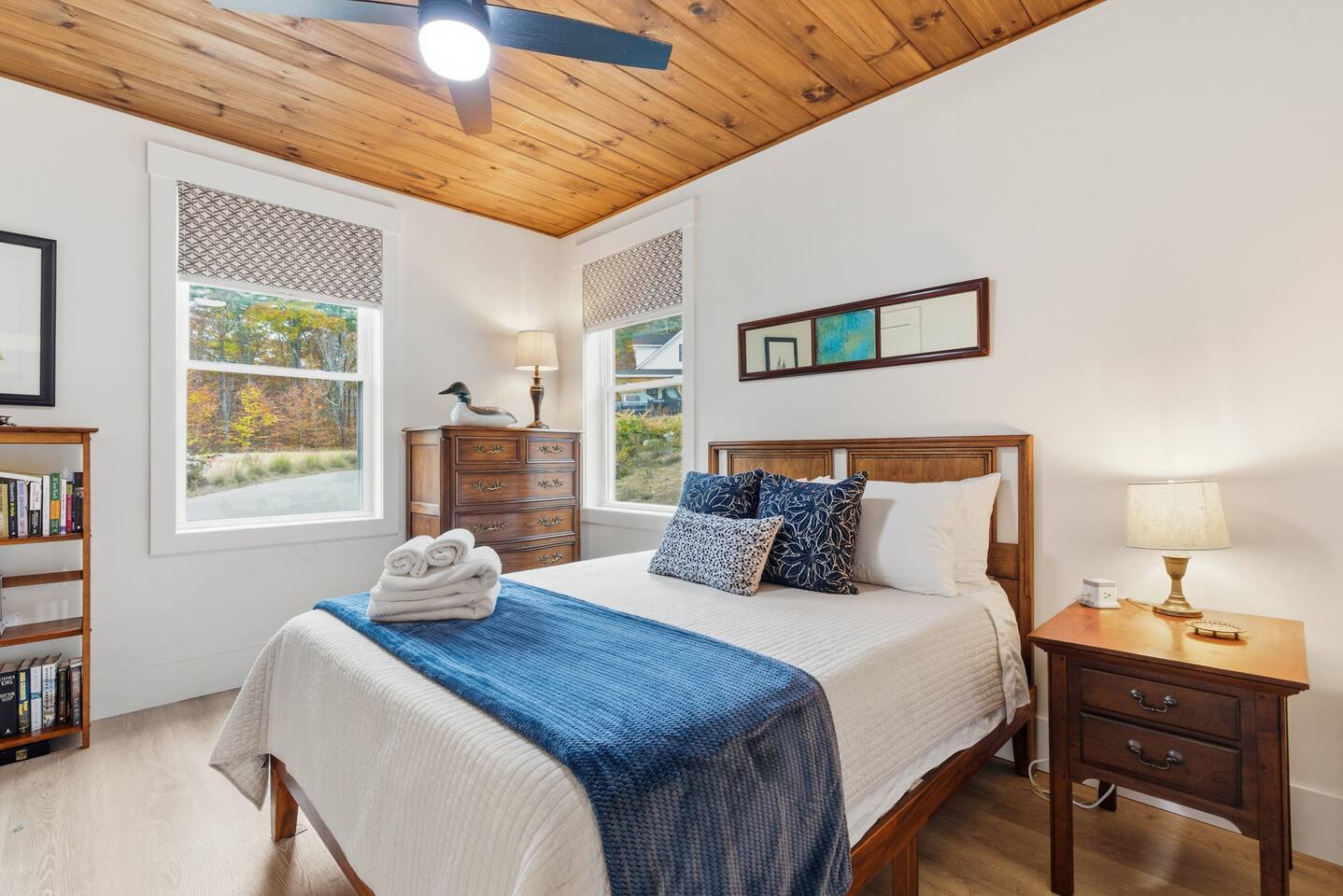 Welcome! This beautiful and serene home offers peaceful surroundings and a sense of adventure. Perfect place to rest, recharge, and create unforgettable memories. 3 cozy beds (2) queen (1) king Two family rooms Fully stocked kitchen Short walk to lake Star gazing 🌲 Wooded views 🛥️ Boats water sports paddle boarding boat rental Bring your bike for scenic rides Ample parking Boat enthusiasts welcome Highlights: Bring your boat Experience: Local Spa Hiking Skiing Restaurants Farms